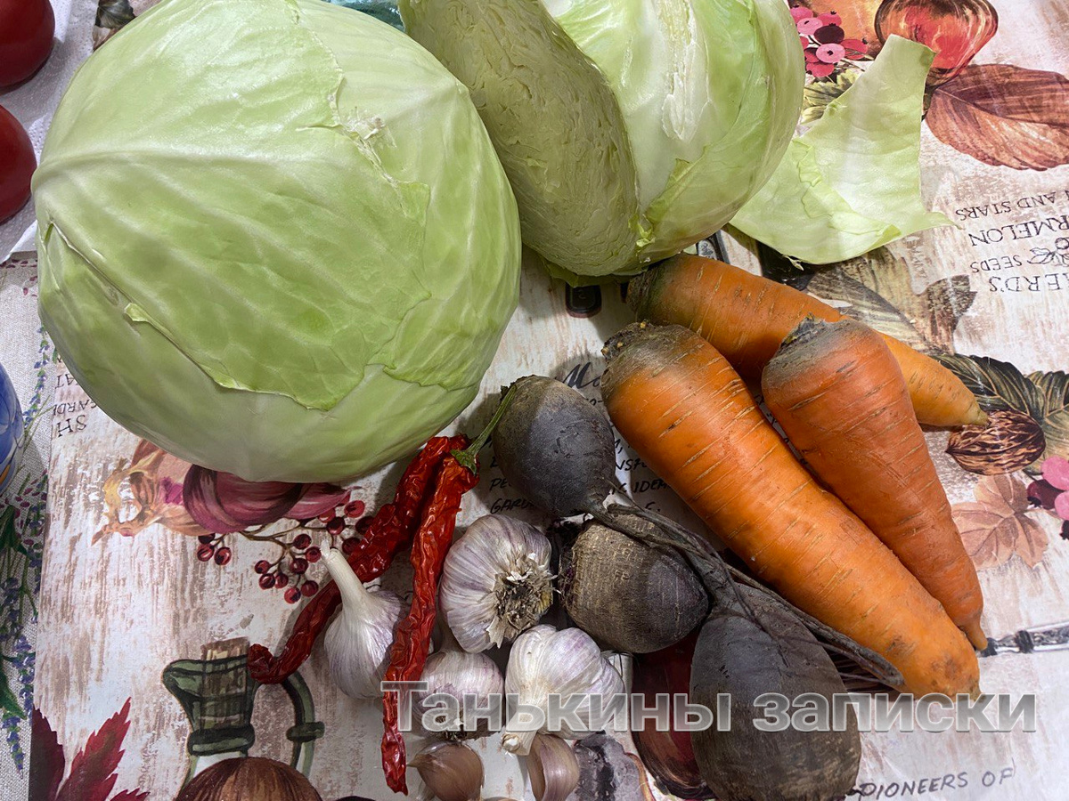 Количество овощей не указываю, так как давно делаю под свой вкус. У меня примерно получается почти поровну: чуть бОльшая часть половины это капуста, а остальное - это суммарно остальные корнеплоды. Но в оригинале капусты 2/3 где-то должно быть.