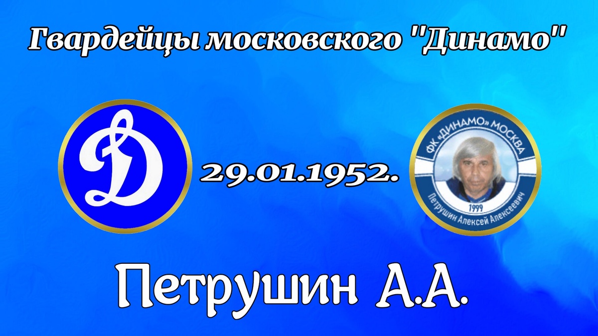 Доброго времечка суток уважаемые Динамовцы! 29 января 1952 года родился ПЕТРУШИН АЛЕКСЕЙ АЛЕКСЕЕВИЧ Футболиста московского «Динамо» 70-х годов Алексея Петрушина помнят все истинные ценители футбола. Он не блистал в сборной страны, даже, к удивлению, ни разу не попал в списки тридцати трёх лучших игроков сезона, но всегда оставался честен перед собой, перед окружающими и, конечно же, перед футболом — делом всей своей жизни. Да, он не достиг всего, что мог бы, но и то, чего он добился, нельзя назвать малым. Достаточно напомнить юным болельщикам бело-голубых, что он был незаменимым звеном того состава, который принёс «Динамо» его последнее на сегодняшний день чемпионство. Его роль в команде была не только физиологически выражена — на поле он всегда был там, где его ждала игра. Петрушин умел читать моменты, предугадывать ходы соперников и сопереживать партнёрам, что вытягивало команду в самые критические моменты матчей. Его умение создавать моменты и отрабатывать в обороне делало его нас