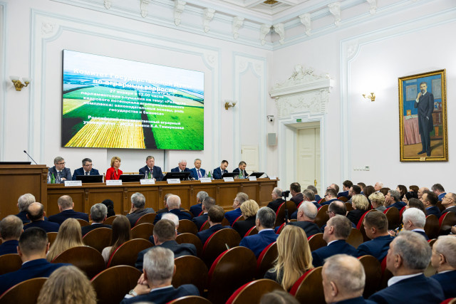 27 Январь / 2025Комитет по аграрным вопросам Государственной Думы Российской Федерации пригласил депутатов, руководителей аграрных вузов и НИИ, представителей федеральных и региональных органов власти, экспертного сообщества, отраслевых союзов и ассоциаций, некоммерческих организаций и производителей на парламентские слушания в Тимирязевскую академию. Речь шла о развитии кадрового потенциала агропромышленного комплекса Российской Федерации. Затрагивались законодательная поддержка, участие государства и бизнеса. Перед участниками выступили Министр сельского хозяйства Оксана Николавна Лут, глава Комитета Госдумы по аграрным вопросам, Академик РАН Владимир Иванович Кашин и ректор университета, Академик РАН, профессор Владимир Иванович Трухачев. Как отметила О.Н. Лут, люди – ключевая ценность для сельскохозяйственной отрасли. С учётом национальных целей по увеличению объёма производства продукции АПК на 25% и экспорта – на 50% комплексный подход к обеспечению предприятий в