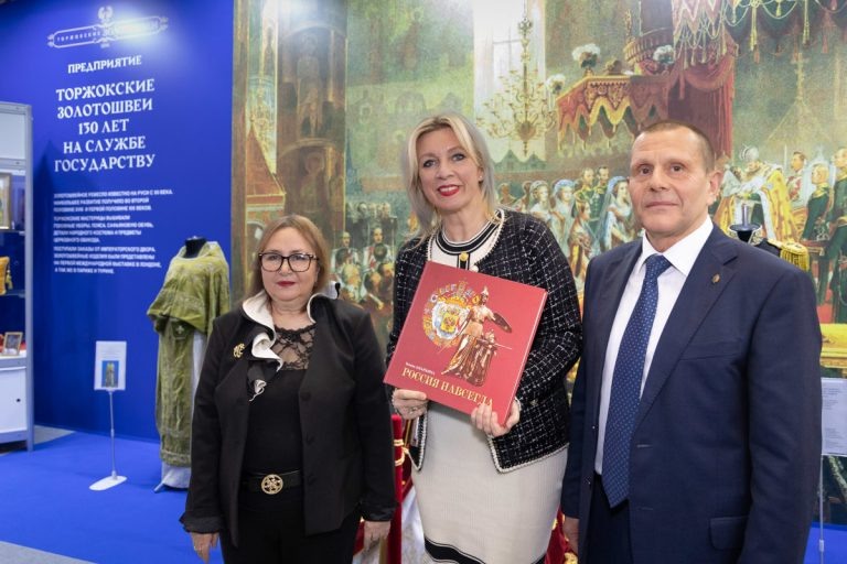 – Золотошвеи из Торжка уже сотни лет обшивают государственных служащих, начиная с высших чинов и вплоть до простых служащих. Это и эполеты, и погоны. Всё это прошло через века и стало традицией, которую бережно сохранило предприятие «Торжокские золотошвеи». Поэтому дипломатическая форма, восстановленная по лекалам, с учётом традиций – это прекрасный пример золотошвейного искусства, это произведение, хранящее «тепло рук человеческих». Мы помогаем сохранять эти традиции, составляющие истинный «код нации», – отметила директор департамента информации и печати МИД РФ Мария Захарова. – Поэтому я всем говорю: «Посетите Торжок и прикоснитесь к этому прекрасному искусству»! В Торжке нужно обязательно быть, ведь там есть уникальное предприятие «Торжокские золотошвеи», много музеев и традиционная русская кухня, в том числе, Пожарские котлеты.