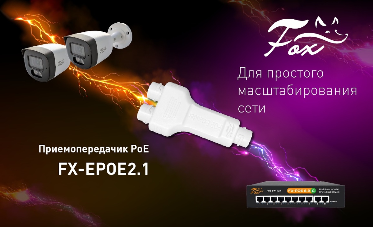 Максимальная длина медной витой пары CAT5e и CAT6 для передачи сигнала в сетевых системах составляет 100 метров. Если превысить это расстояние без специальных функций в оборудовании или дополнительных аксессуаров, то сигнал может не дойти до получателя, а оборудование с PoE – остаться без питания. Есть множество вариантов решения этой задачи, один из них: приемопередатчик FX-EPOE2.1 от бренда FOX. Новинка представляет собой устройство 2-в-1, сочетая в себе функции удлинителя и делителя сетевого сигнала. В FX-EPOE2.1 предусмотрен 1 входной PoE-интерфейс и два выходных интерфейса для подключения и питания оконечных устройств. Рабочий стандарт PoE: IEEE802.3af/at, что позволяет запитывать устройства с поддержкой данного стандарта. Максимальная общая выходная мощность составляет 25.5 Вт (при использовании сразу двух портов выходная мощность делится между питаемыми устройствами – до 12.5-12.75 Вт на порт). Запитать с помощью FX-EPOE2.1 можно обычные и поворотные камеры видеонаблюдения, внут