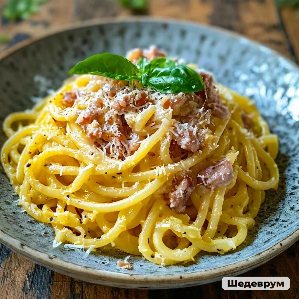 Хочу поделиться рецептом одного из моих любимых блюд. Инградиенты: Бекон – 200г Яйца – 4шт (3 желтка и 1 целое яйцо) Сыр пармезан(тертый) – 50г Масло сливочное – 2 ст. ложки Масло оливковое – 1 ст.ложка Чеснок – 2 зубчика Соль – по вкусу Перец черный молотый – по вкусу Способ приготовления: 1. Нарезаем бекон квадратиками. Два зубчика чеснока раздавливаем ножом. 2. Разогреваем сковороду, растапливаем 1 ст. ложку сливочного масла и обжариваем бекон с чесноком. Жарим на слабом огне 10 минут, из бекона должен вытопиться жир, но бекон должен остаться мягким. После обжаривания чеснок удаляем. 3. В кипящую воду (2 л) добавляем 1 ст. ложку соли, 1 ст. ложку оливкового масла и спагетти. Варим спагетти так, как указано на их упаковке. 4. Отделяем 3 желтка (белки здесь не понадобятся). Кладем в миску желтки и одно яйцо, солим и перчим (по 1 щепотке), хорошо взбиваем. 5. Добавляем в яичную смесь 2 ст. ложки тёртого сыра, перемешиваем. 6. Готовые спагетти откидываем на дуршлаг, предварительно остав