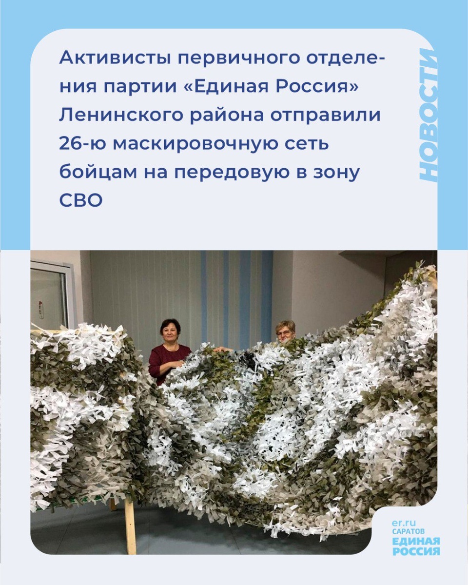 📦Активисты первичного отделения партии «Единая Россия» Ленинского района отправили 26-ю маскировочную сеть бойцам на передовую в зону СВО
