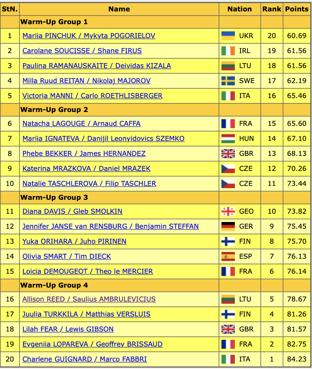 Дорожка на одной ноге 3 и 2 уровня. Поддержка по прямой - 4 уровень, чисто. Затем последовала вращательная поддержка. Хороший слайдинг после. Танцевальное вращение получилось без проблем. Дорожка по диагонали на 2 уровень у обоих. Стационарная поддержка на 4 уровень - без вопросов. Твизлы на 4 уровень у обоих. Дорожка в характере танца меня не впечатлила. В конце хорошая танцевальная поддержка. Катались выразительно, но после испанцев программа сама по себе смотрелась уже блекло. По техническому уровню мне они тоже показались слабее.