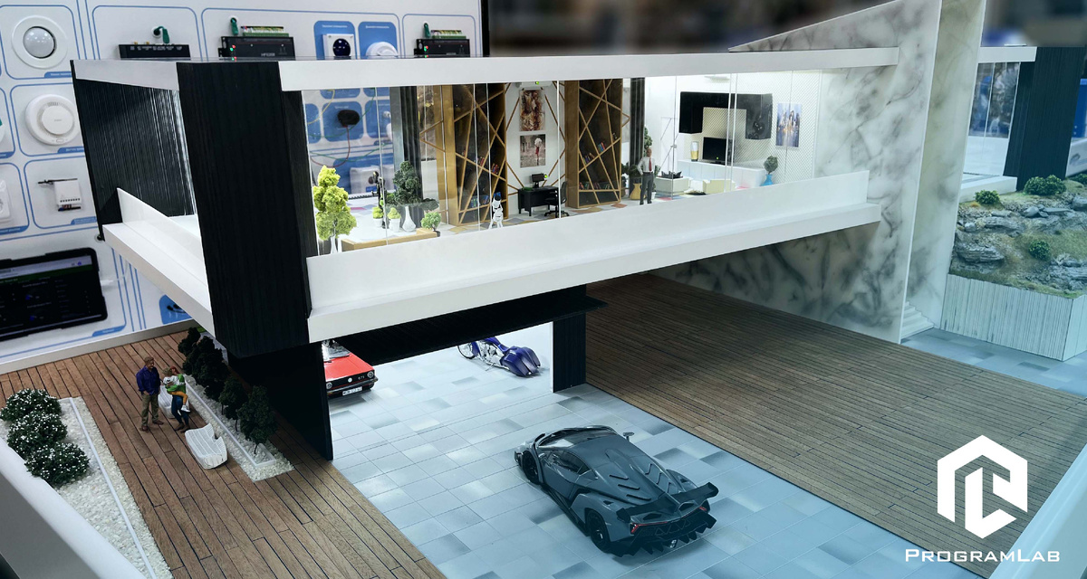 Поговорим про учебный комплекс «Интернет вещей в умном доме» Лабораторный комплекс, разработанный компанией Програмлаб, представляет собой современный макет дома, оснащенный датчиками, устройствами и контроллером. Он предназначен для обучения принципам работы систем IoT (Internet of Things) на примере автоматизированного умного дома. Макет умного дома от Програмлаб уникален тем, что каждый проект создается с индивидуальными особенностями и уникальными дизайнерскими решениями. Это делает каждый последующий комплекс непохожим на предыдущий. Комплекс позволяет изучить и реализовать автоматизацию управления ключевыми системами дома: Лабораторный макет оснащен датчиками, которые фиксируют такие параметры как температура, влажность воздуха и уровень освещенности. Это позволяет обучающимся разрабатывать алгоритмы анализа данных и принятия решений на основе показаний. Благодаря этому, учащиеся могут на практике изучит основы IoT, принципы работы с автоматизацией и обработкой данных. «Умный дом