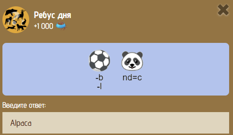 Сегодня 28 января в 09:59 по мск, вышел новый ребус в игре Zoo. Ответ на ребус дня будет актуален до 11:59 по мск 29 января. Ответ на ребус дня 28 января в zoo: Alpaca Наш Telegram - https://t.me/mir_tapalok В нашем Telegram публикую помимо ответов на загадки и ребусы игры Zoo, расписание с появлением коробок с кормом на 28 января