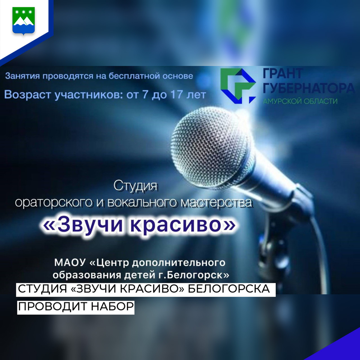 В Центре допобразования Белогорска студия ораторского и вокального мастерства «Звучи красиво» проводит набор участников. Проект «Звучи красиво» реализуется с использованием гранта Губернатора Амурской области.