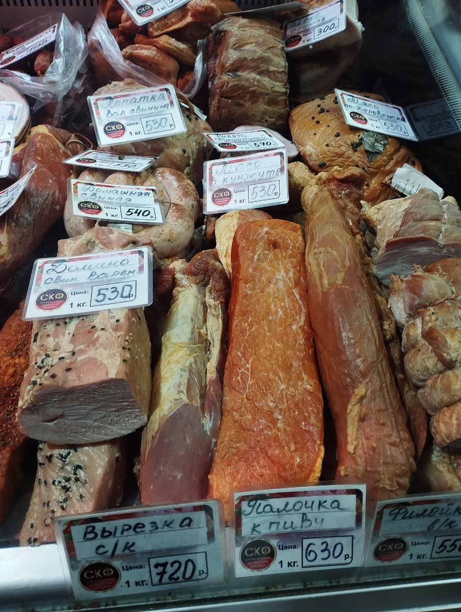 Готовите ли вы сборную солянку? Я варю ее изредка. Не самую плавильную. То есть совсем не такую, какая была когда-то в одном из донецких кафе. Сейчас в центре города работает новое, где в меню есть это блюдо. Надо бы мне попробовать и оценить, но как-то никак настроение для дегустации не найду. Теперь о солянке. Для неё сначала варю бульон, а после добавляю сосиски и другие мясные вкусности, которые покупаю на рынке. А там выбор колбасных изделий немалый в пяти павильонах, где продают продукцию разных мясокомбинатов. Сколько их в нашей республике, ответить не смогу. Могу лишь сообщить, что работают наиболее известные в Макеевке, в Енакиево и в Снежном. Их продукцию многие и в качестве гостинцев возят в разные регионы. Очень многим нравится, но мне больше по вкусу мясные деликатесы из Курска и Воронежа. В них намного меньше соли и в холодильнике лучше хранятся. Но для солянки покупаю именно такие. Потому что выбор большой и цены более демократичные. Покажу ассортимент. Это копчёности о
