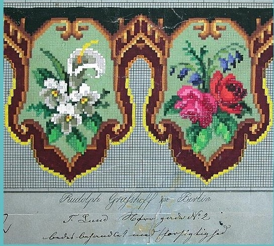 Первые счетные схемы в том виде, в котором мы привыкли их видеть и сегодня, были напечатаны в 1810 году Л.В. Виттихом и сразу стали пользоваться необыкновенным успехом. В 1849 году им производилось уже около 14 000 различных рисунков, которые вручную раскрашивались за мизерную плату девушками из бедных семей. Именно благодаря этим картинкам особым спросом стала пользоваться и берлинская ярко окрашенная шерсть. Для вышивок были специально разработаны нитки новых окрасок – яркие розовые, пурпурные, лимонного цвета и цвета фуксии. Эти яркие нитки также сразу привлекли к себе внимание рукодельниц.