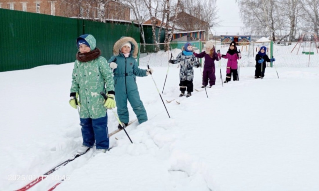 Дошколятам в Новосибирской области подарили для занятий новые лыжи
