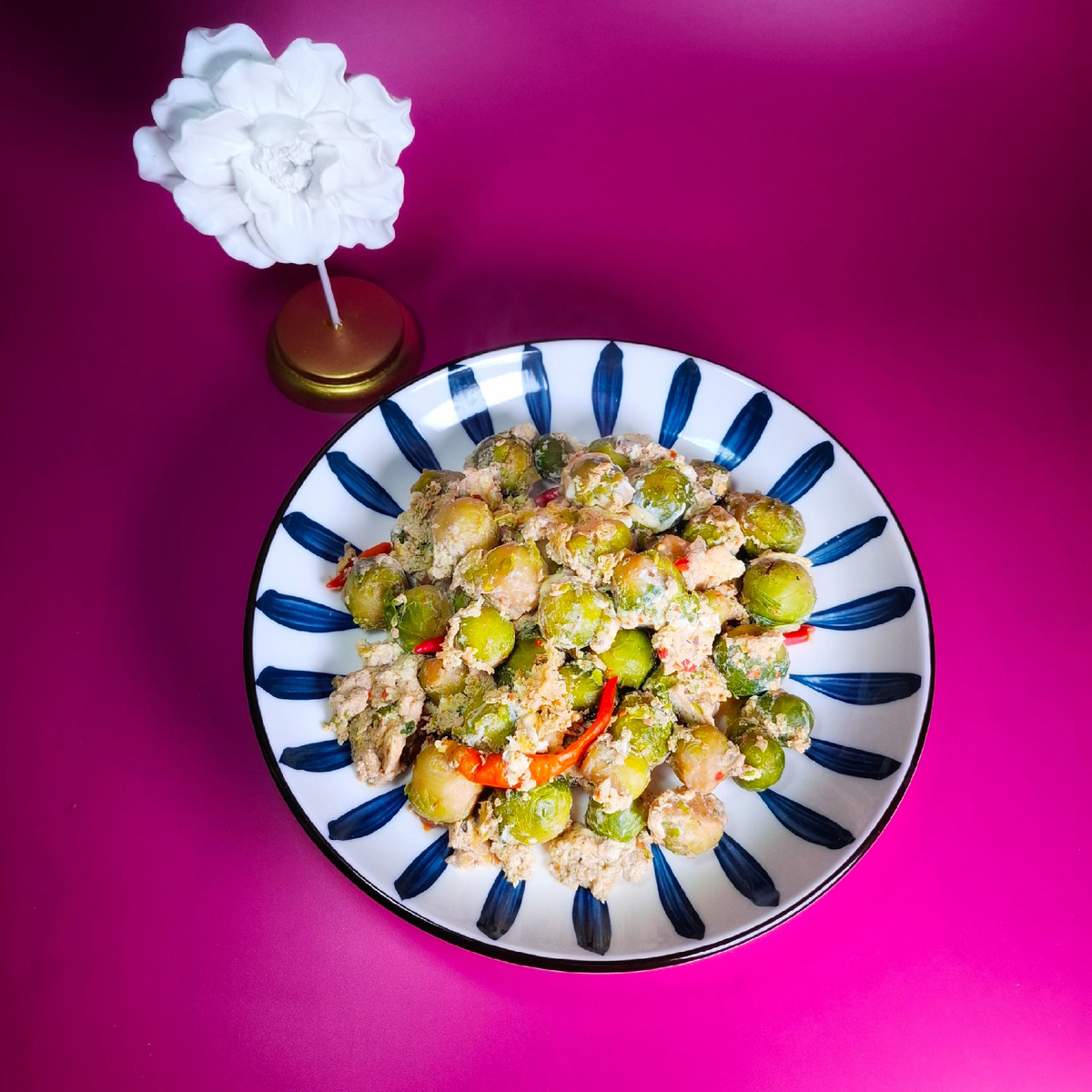 Утром я завтракала своей любимой брюссельской капустой, в которую вбила два яйца, насыпала специи и положила несколько острых перчиков.