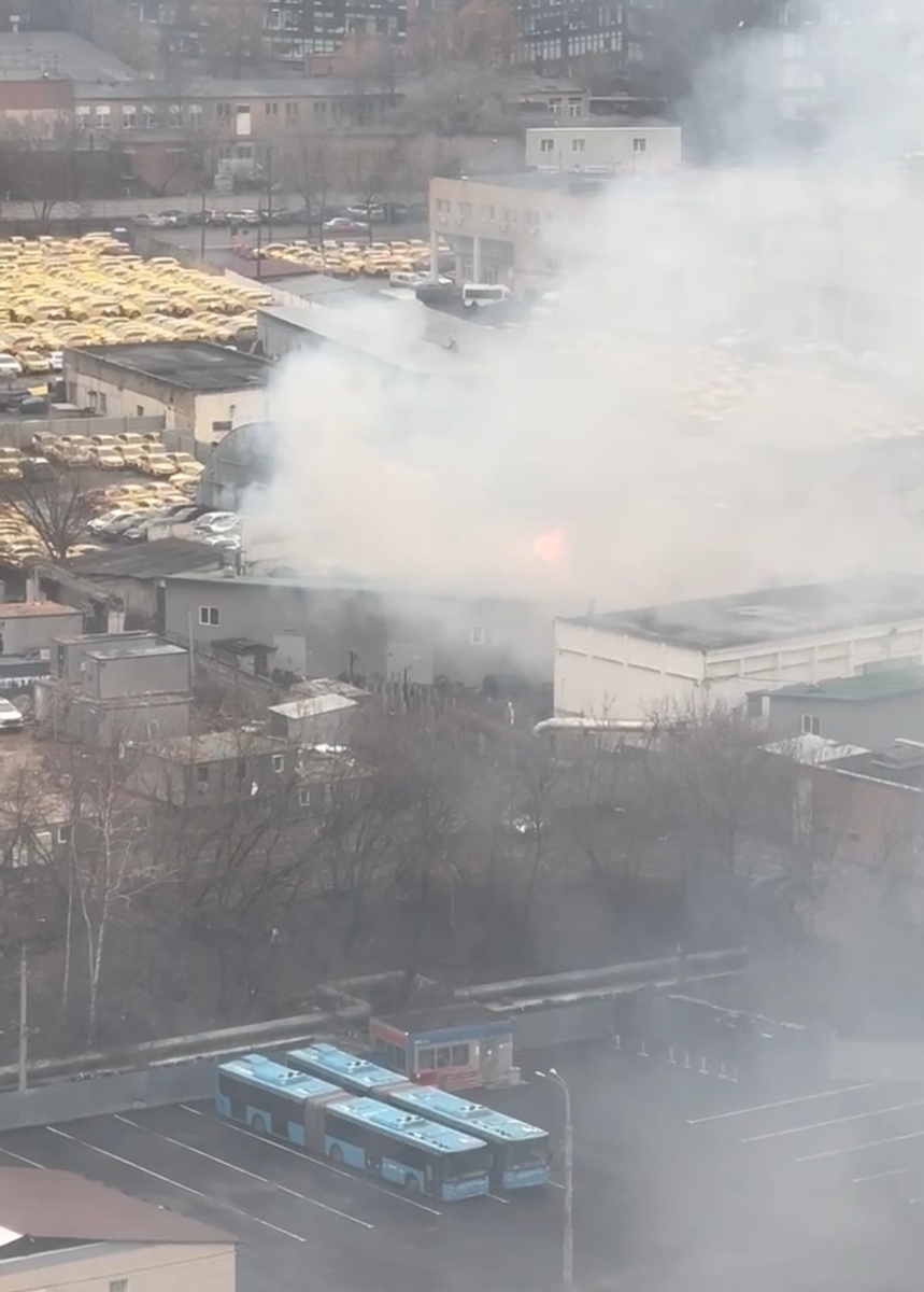 Ангар полыхает на территории таксомоторного парка на юге Москвы
