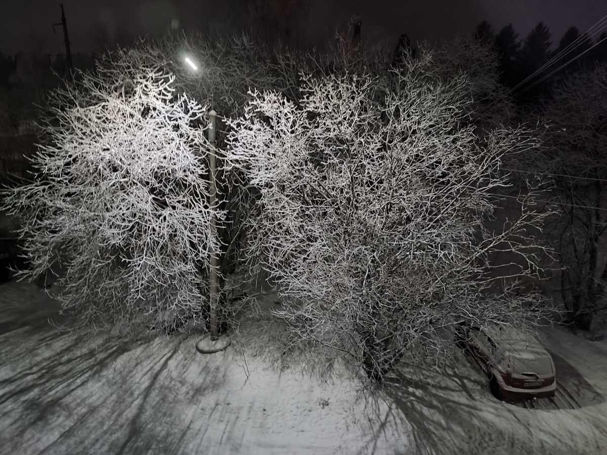 Нас вчера накрыло очередным снегопадом. На фоне ноля градусов. Снег налипал на влажные ветви деревьев, а вечером картина дополнилась вальсом снежинок в свете уличного фонаря за окном. К утру, конечно, вся эта красота померкла, как не парадоксально это звучит. На фоне темного неба всё это белое великолепие смотрелось невероятно красиво. Я довязала длину кардигана. Придумала какое-то замысловатое закрытие иглой через полую резинку. Потратила кучу времени и не уверена, что мне нравится результат. Но распустить это уже невозможно. Если только вырезать и подбирать петли. Теперь надо определиться с цветом отделки планки. Кардиган получается толстый, на очень прохладную погоду. Может быть и пригодится, мы тут со всех сторон окружены озёрами, находимся на горке, ветра непременно будут дуть. Но не отпускает мысль о легком кардигане. Была мысль связать из бамбука, как раз есть ниточка приятного зеленого цвета. И в то же время есть пряжа, цвет которой заявлен, как брусничный. Это, конечно, спор