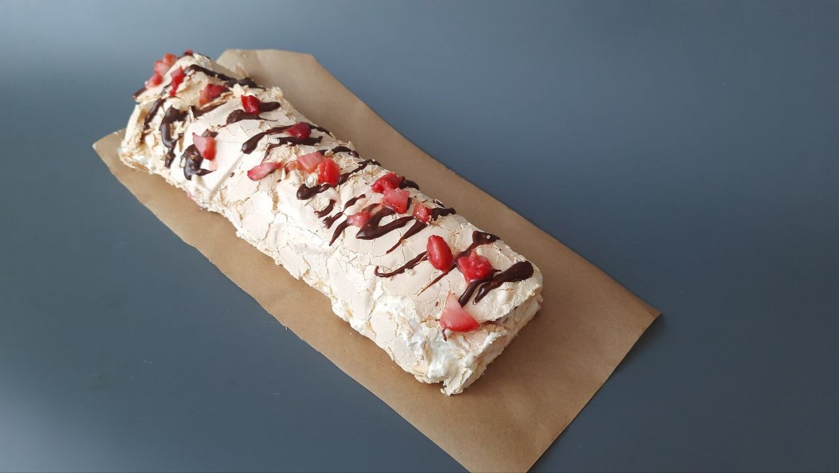 МЕРЕНГОВЫЙ РУЛЕТ Ингредиенты: белки яичные - 4 -5шт, сахар (сахарная пудра) - 180г, кукурузный крахмал - 10г, лимонная кислота - щепотка. Крем: Сметана (сливки) - 200г, сахар (сахарная пудра) - 1 ст..л, творожный сыр-100г Приготовление: Посуда и венчики от блендера должны быть обязательно сухими и обезжиренными! 1. К белкам добавляем лимонную кислоту и взбиваем блендером. 2. Добавляем ванилин. 3. Небольшими порциями добавляем сахар и взбиваем до полного растворения сахара. 4. Добавляем кукурузный крахмал и взбиваем до образования устойчивых пиков. 5. На противень застеленный пергаментной бумагой, выкладываем готовую массу и равномерно распределяем. 6. Выпекаем при 150 град. 35 мин. 7. Смазываем готовым кремом и заворачиваем в рулет.