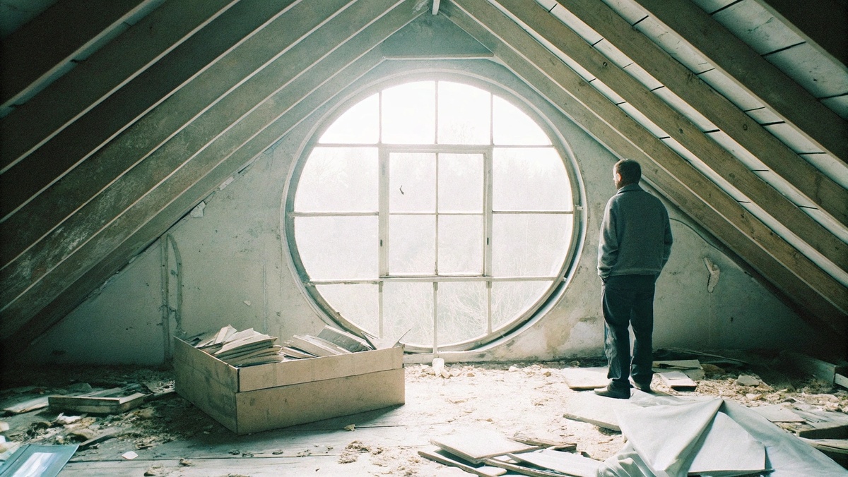 Алексей стоял на пыльном чердаке, освещённом тусклым светом осеннего дня, пробивающимся через круглое окно. Лучи, будто тонкие нити, вытягивались к коробке, заваленной старыми газетами и пожелтевшими от времени документами. Он знал, что эта коробка ждала его с того самого дня, когда он впервые вошёл в этот дом после смерти родителей.