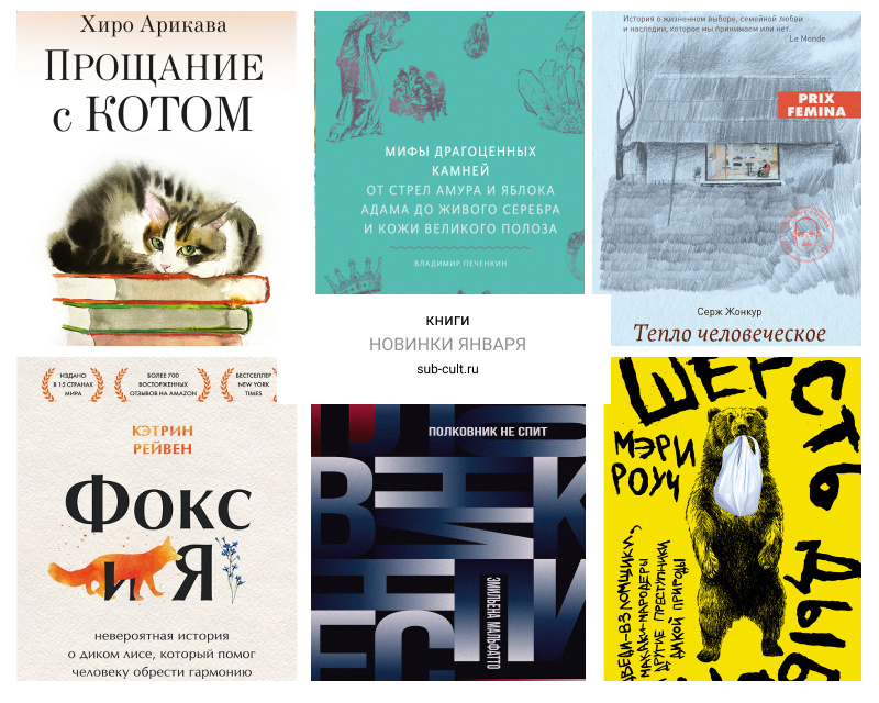 Сборник философских рассказов с японскими котиками, нон-фикшн про драгоценные камни от геолога, французский роман о сельской жизни и семейном воссоединении, антиутопия про обезумевшего полковника, исследование дикой природы, от которой шерсть встаёт дыбом, и трогательная история о лисе, спасшем человека, — это новинки января, мимо которых нельзя пройти.