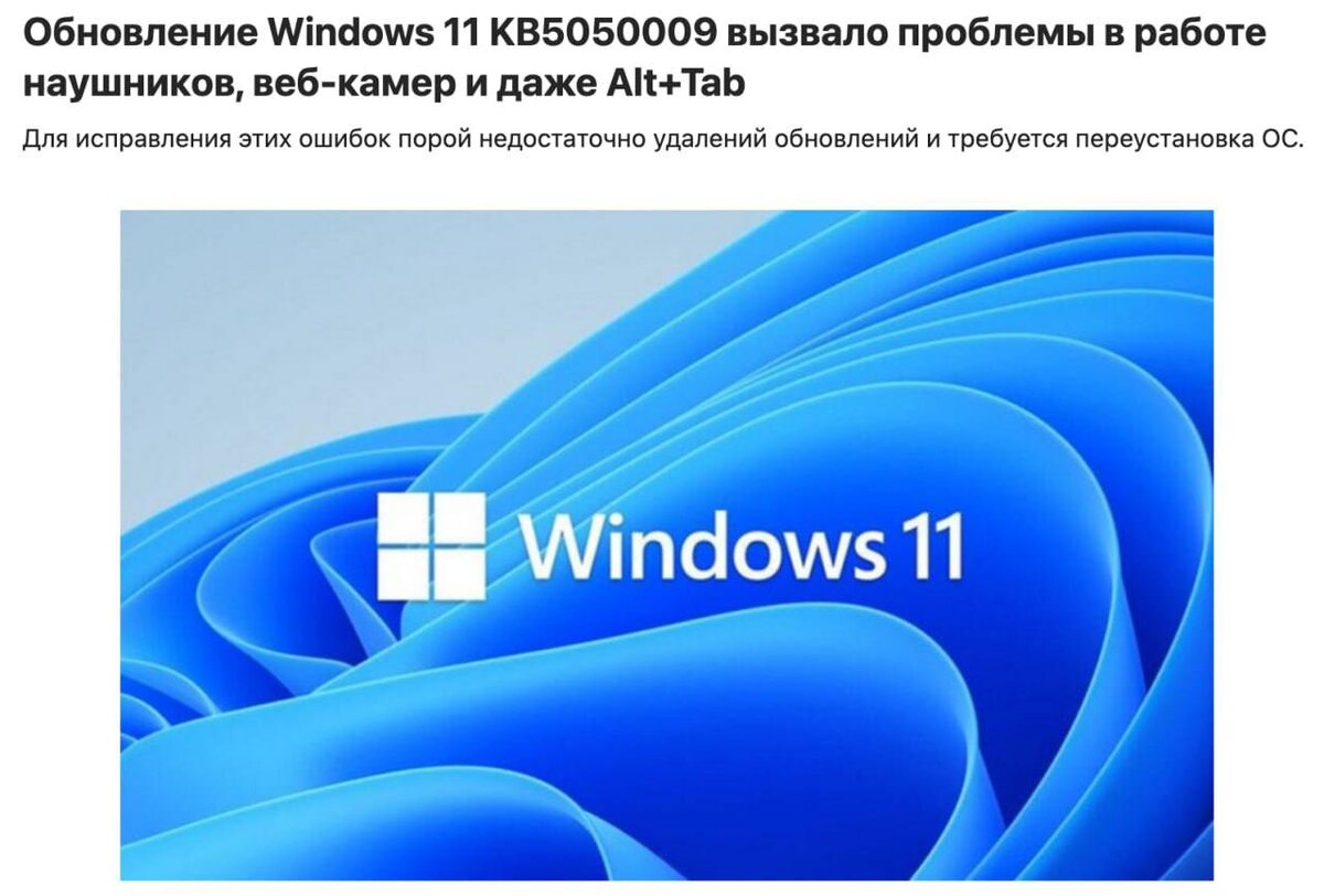 ⚠️ Новое обновление Windows 11 (KB5050009) ломает ПК! • Bluetooth-наушники перестали передавать звук. • Alt+Tab теперь может отправить вас в синий экран. • Встроенные вебки на ноутбуках и мониторах просто исчезли. • Диспетчер задач отказывается открываться в играх. Не обновляемся, ждем пока пофиксят