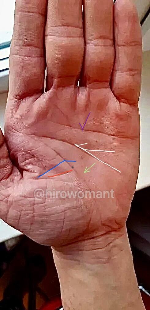 Руки мужчины, 39 лет, правша. Видим грубый кожный покров, элементарную земную стихию с наличием основных линий и практически отсутствие второстепенных. Мужчина женат, есть дочка, но детей я четко вижу двоих, возможно, присутствует какая-то тайна. Левая рука имеет уголковое образование по линии сердца по одной проекции 34-35 лет, по обратной 39-40. Уголок всегда предвещает событие удара и шока, травматичного и болезненного происшествия. Линия ума пошла на вилку с разными по длине зубцами. Какое-то неприятное обстоятельство расщепило разум, оценивая остальные линии в этом возрасте и оценивая дальнейший ход, можно предположить, что ему стало сложно видеть будущий путь. У меня вообще всегда не самый благоприятный прогноз для носителей редкого знака - полное (!) отсутствие линии судьбы. Многие труды гласят, что это чуть ли не фаталити. Не хочу быть столь категоричной, помним, что всегда мы оцениваем картину руки целиком, а не вырываем из контекста один знак, но, пожалуй, он действите