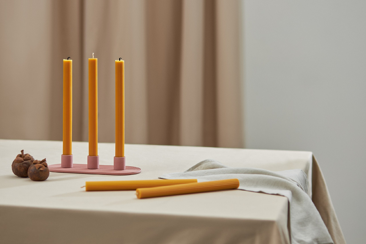Свечи выполнены вручную без использования ароматизаторов, не коптят, поэтому могут использоваться для сервировки праздничного стола и повседневных ужинов. Продаются в наборе из двух свечей, цена 1 390 руб.