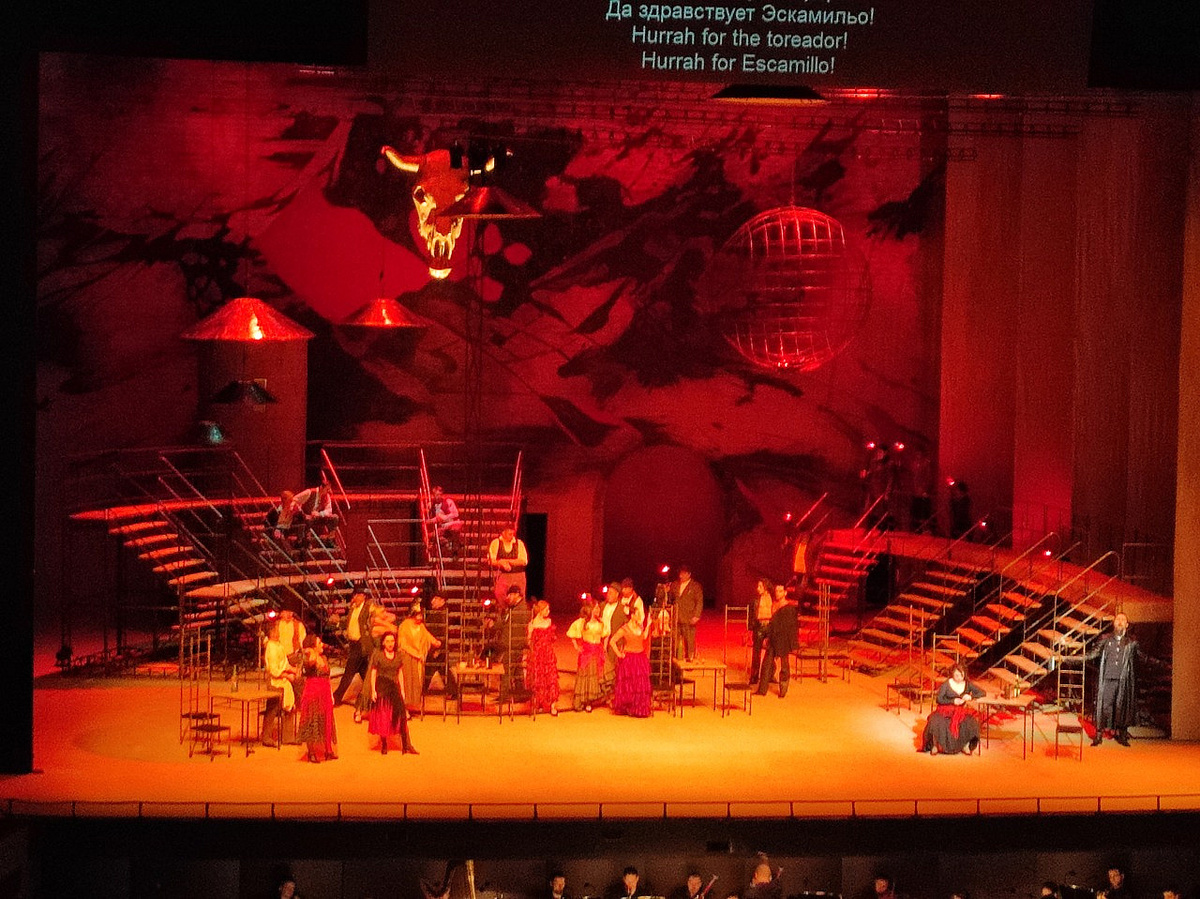 Быть в Питере и не побывать в Мариинском театре, конечно, грешно. Ну, мы-то здесь уже были, на основной сцене, смотрели «Щелкунчика». Считаем питерский балет лучшим в стране, а потому не воспринимаем ажиотаж, который уже не первый год создаётся вокруг декабрьских/январских постановок Большого. Нет, на московской сцене выступают, конечно, лучшие, и в этом мы ещё раз убедились в последний день прошлого года, пусть и дистанционно. Валерий Гергиев придумал потрясающую форму причастности всей страны к лучшим постановкам в Большом. А первого января по центральным каналам транслировался уже оперный концерт из Большого. Именно там мы услышали потрясающий голос нарождающейся оперной дивы Юлии Маточкиной. Поразительной чистоты меццо-сопрано не оставляло равнодушным. Мы к тому времени уже взяли билеты в Мариинку-2 (новый недавно отстроенный современный зал, находящийся рядом с исторической сценой) на «Кармен», но состав был неизвестен. К нашей радости, за несколько дней было объявлено, что Карме