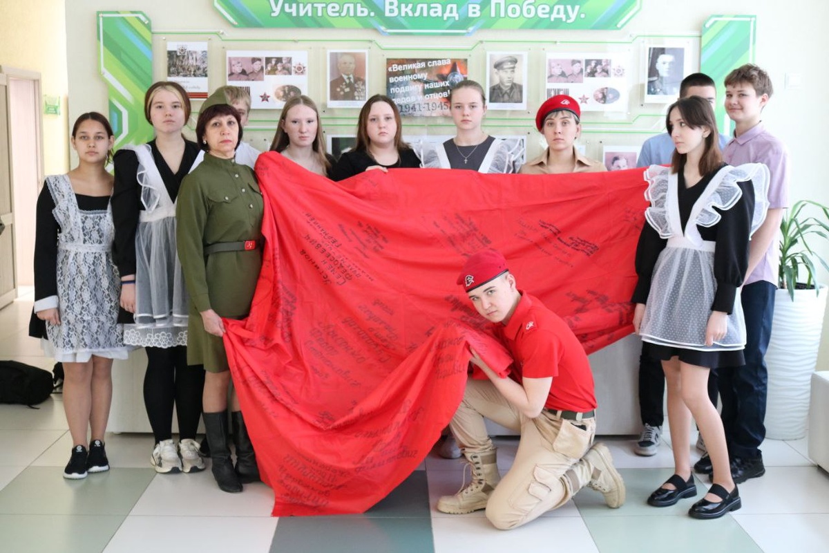 В с. Бурлаки стартовала патриотическая акция к 80-летию годовщины Победы «Алая лента памяти. Подвиг села» Идейный вдохновитель арт-проекта «Поколение» С.Ю. Скирман и активисты беседуют с потомками героев, предлагают им на красной треугольной ткани оставить инициалы своих ветеранов Великой Отечественной войны и указать название фронта, где земляк воевал. Уже пообщались со 192 семьями, все треугольнички сшили вместе в общее алое полотно. В каждом уголке этого огромного знамени Победы (а сейчас размер его 2 на 6 метров) сохранены имена земляков фронтовиков. И акция продолжается, к празднику размер флага станет ещё больше. - Цель нашей акции заключается в сохранении памяти о Великой Отечественной войне. Каждый из участников нашей акции имеет отличительный знак - алый галстук, цвет которого символизирует энергию, жизненную силу и кровь, пролитую за Отечество. Мы посетили каждый дом, зашли в каждую квартиру и прикоснувшись к памяти семьи, по крупицам собрали воспоминания о ветеранах Велико