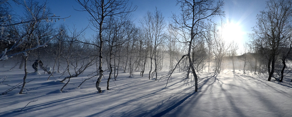 На улице -22 ℃. Пошла в дровник. По дороге полюбовалась восходом. Чуть не отморозила пальцы, пока фотографировала. Тишина. От мороза трещат берёзы. Поют снегири. Да-да, они, оказывается, поют. Накидала в волокуши немного дров.