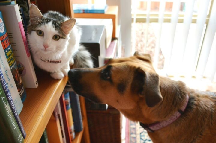 Их страх настолько велик, что порой мурлыки забираются очень высоко на деревья «Живут как кошка с собакой», — говорят о тех, кто постоянно ругается и конфликтует. Но почему-то собаки чаще испытывают к котам любопытство, а вот мурчики настроены более категорично. Одни кошки не дадут себя в обиду псу, который живёт с ними под одной крышей — могут даже дать когтистой лапой по носу Барбосу. А другие с ужасом прячутся и пребывают в жутчайшем стрессе, как только собака оказывается поблизости. У кошек и собак — общие инстинкты, они хищники, охотники и добытчики. Однако восприятие мира у них отличается, из-за чего отношения между ними достаточно сложные. Собаки — активные, шумные, общительные существа, а кошкам нравятся покой, тишина, уединение и более тонкие сигналы. Если кот подёргивает хвостом, то он явно недоволен, а собачий виляющий хвост означает противоположное — радость. Порой кошки вполне мирно живут и ладят с собакой в общем доме у одного хозяина, но в то же время такая мурлыка может