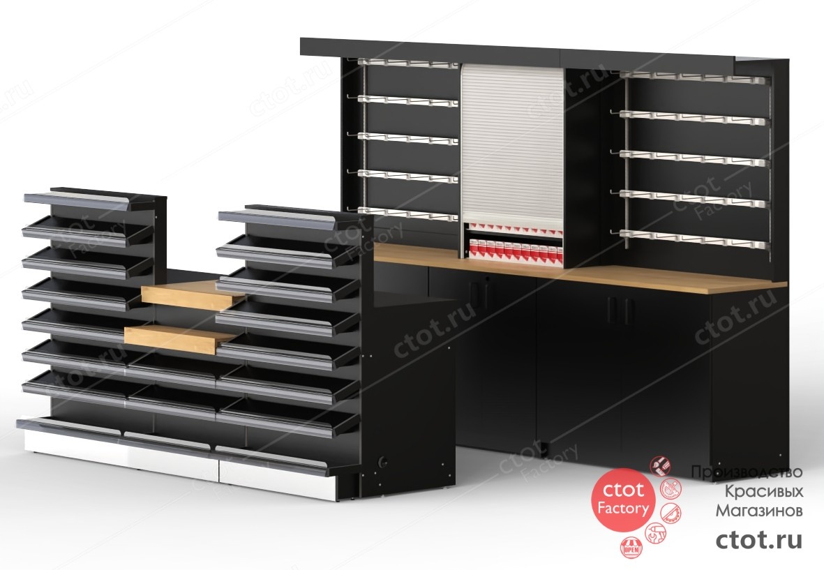 Друзья, надеемся, что у вас такой же отличный старт недели, как и у нас! Сегодня расскажем о разработке фабрикой Ctot Factory современного оборудования для АЗС в городе Чебоксары, где проходит масштабный ребрендинг. Новый дизайн оборудования сочетает в себе функциональность и стиль, с акцентом на чёрные матовые и древесные текстуры, подчёркивающие элегантность и современный подход. Стойка операторов включает удобные открытые полки для выкладки товаров, шкафы для хранения и зону с роллетами для сигаретной продукции. Особое внимание уделено эргономике и зонированию пространства, что создаёт комфорт для сотрудников и привлекает внимание посетителей. Чёткие линии и продуманное расположение секций способствуют визуальному упрощению восприятия ассортимента, что улучшает опыт покупателя и способствует увеличению продаж.