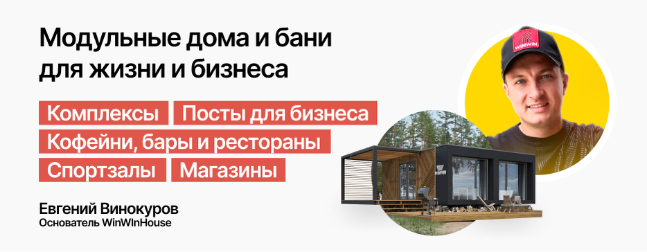 Но сегодня я готов доказать обратное: всё можно сделать куда быстрее и без потери качества. Меня зовут Евгений, основатель WinWInHouse, и последние несколько лет мы вместе с моими коллегами создаём модульные дома, которые помогают предпринимателям буквально «вскочить» в турбизнес и запустить его без долгостроя.