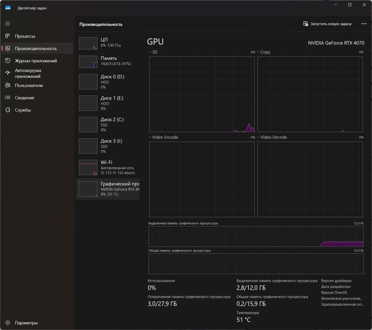 Несколько рекомендаций. За температурой видеокарты и видеопамяти стоит следить, чтобы продлить сроки их службы. Это особенно важно, если вы часто играете, создаете видео или разгоняете ПК. В этой статье мы разберем встроенные и дополнительные программы для мониторинга и расскажем, как снизить температуру. Встроенные способы В Windows 10 и 11 можно проверить температуру через диспетчер задач. Нажмите Ctrl+Alt+Delete, Ctrl+Shift+Esc или нажмите правой кнопкой мыши на панель задач. В появившемся диспетчере перейдите на вкладку «Производительность» – на Windows 10 она расположена вверху, на Windows 11 в колонке слева. В конце списка, в разделе «Графический процессор», написана температура в градусах. Этот метод подойдет, если вы хотите узнать температуру прямо сейчас. Однако есть и более продвинутые методы, ради которых не придется переключаться на диспетчер задач каждые несколько минут. В приложениях Nvidia и Radeon можно включить оверлей, который будет показывать температуру прямо в игре
