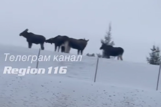 Стадо лосей заметили водители на платной дороге в Альметьевском районе
