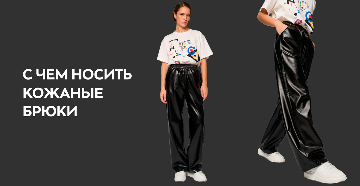 Брюки из натуральной и экокожи — долгоиграющий модный тренд и универсальный элемент современного гардероба, который отлично вписывается в самые разные образы. На примере моделей из актуальных коллекций рассказываем, с чем их носить. С пиджаком или жакетом Кожаные брюки прямого кроя могут стать и основой делового образа, если в офисе нет строгого дресс-кода. Для элегантных офисных комплектов выбирайте прямые или приталенные жакеты и лаконичные рубашки. Если хотите создать более расслабленный и неформальный образ, комбинируйте кожаные брюки с оверсайз-пиджаком, водолазкой или футболкой. Брюки ELEGANZZA