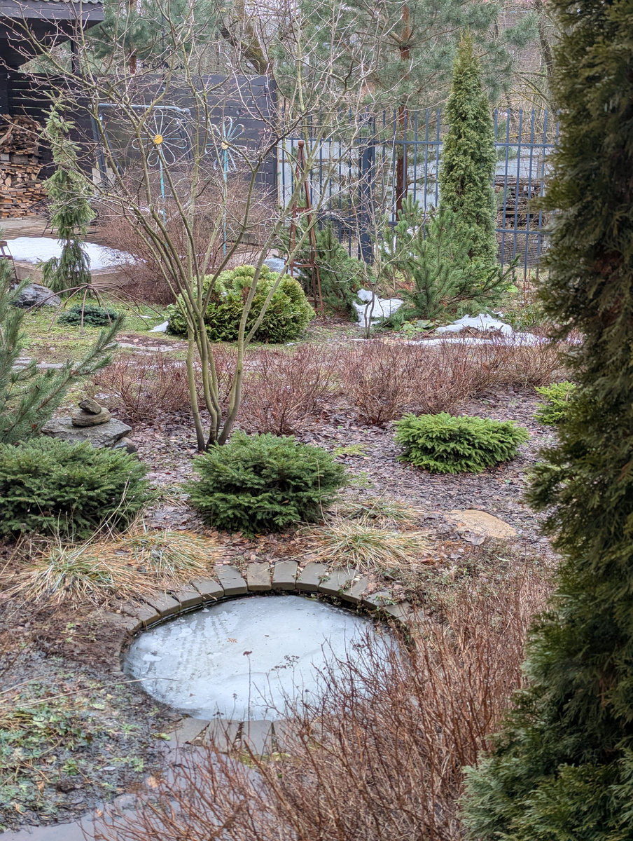 К концу января снег в моем саду практически сошел, и можно открывать садовый дневник очередного сезона. Очень полезно делать такие фото, а также записи о том, какой была зима, весна, лето, осень каждого года. Если это не фиксировать, всё очень быстро забывается. На моей садоводческой памяти это вторая такая теплая зима. Но, в отличие от зимы 2019-2020, в этом году в декабре снега выпало достаточно, конкретно в моем саду снеговой покров сформировался, и, несмотря на оттепели, продержался до конца января. Сейчас, как это обычно и бывает, снег остаётся в основном там, где он падал с крыши, и с северной части дома, там, где его набрасывали с парковки: С другой стороны дома: Рядом с парковкой: В этом году пока никто не поломался, азалии и магнолии щеголяют цветочными почками, но расслабляться рано, ещё не вечер. Почки на игре Ламарка: Магония падуболистная: Лук круглоголовый, вылезший ещё по осени, стоит, как будто и не было никакой зимы: А титул "Сухоцвет 2025" завоевал лук старею