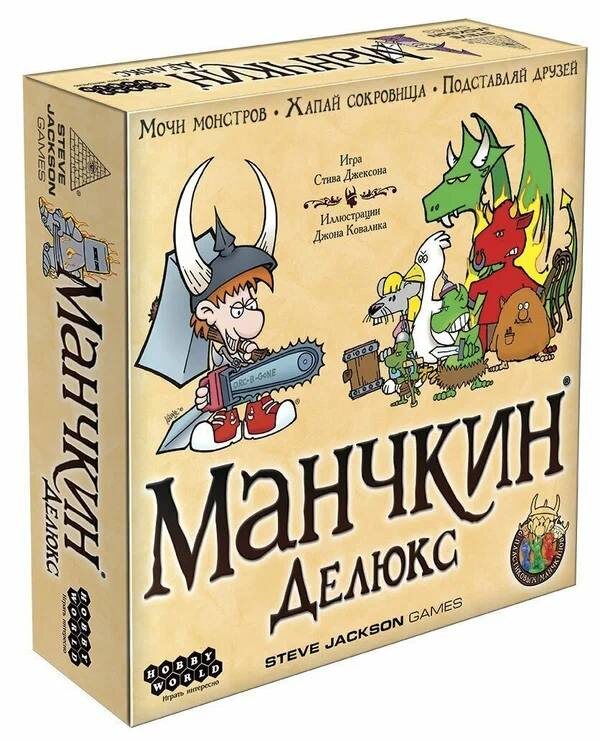 Продолжаем обзор игр из статьи: Манчикин — это культовая настольная карточная игра, созданная Стивом Джексоном, которая превратила стереотипные приключения ролевых игр в невероятно смешное и захватывающее развлечение. Вы будете сражаться с монстрами, собирать сокровища, предавать друзей и пытаться первым достичь 10 уровня. В игре сочетаются простота правил, увлекательный игровой процесс и невероятное чувство юмора. Эта игра идеально подходит для тех, кто хочет посмеяться от души и вдоволь посоревноваться с друзьями. Манчикин пародирует классические настольные ролевые игры. Игроки начинают с первого уровня и должны достичь десятого, побеждая монстров, зарабатывая уровни и собирая сокровища. На каждом ходу игроки открывают двери (тянув карты из колоды), где их может ждать монстр, проклятие или возможность что-то заработать. Побеждая монстров, вы получаете сокровища и поднимаете уровень, но не всё так просто — другие игроки могут вам мешать, усиливая монстров или ставя ловушки. Главное —