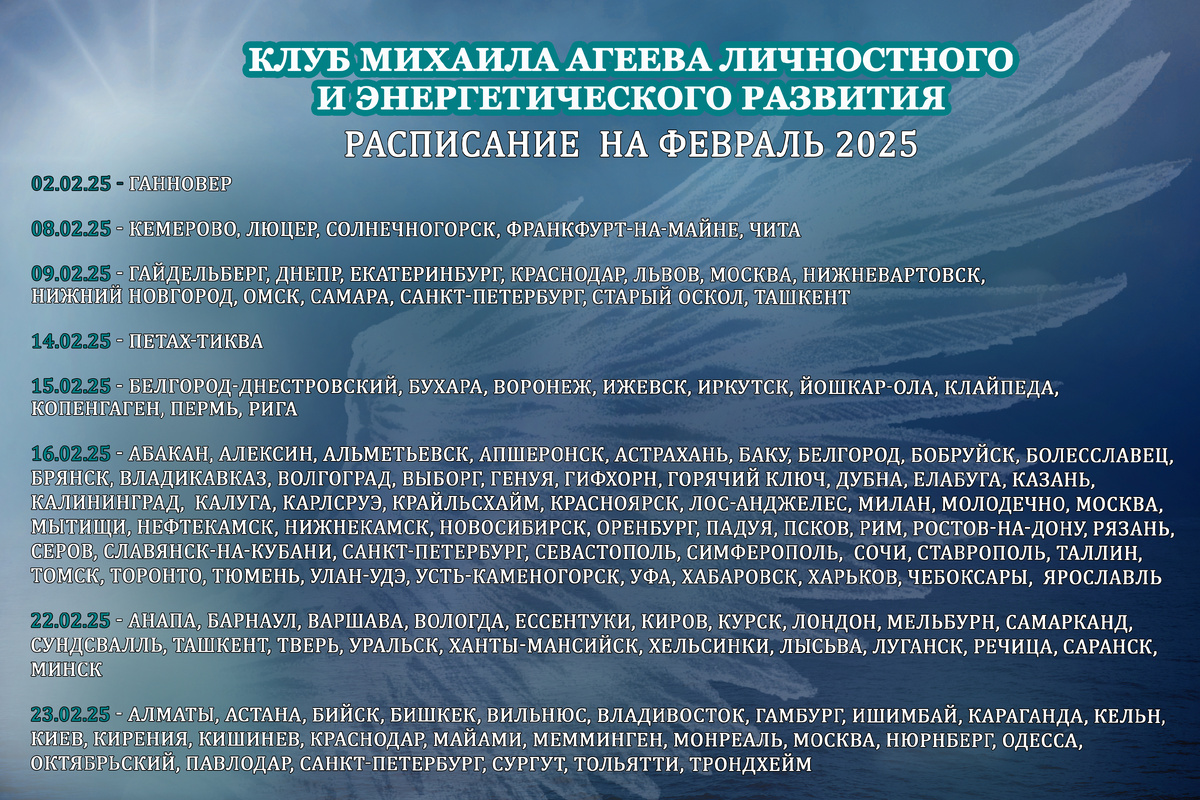 КЛУБ МИХАИЛА АГЕЕВА ЛИЧНОСТНОГО И ЭНЕРГЕТИЧЕСКОГО РАЗВИТИЯ Расписание на ФЕВРАЛЬ 2 0 2 5