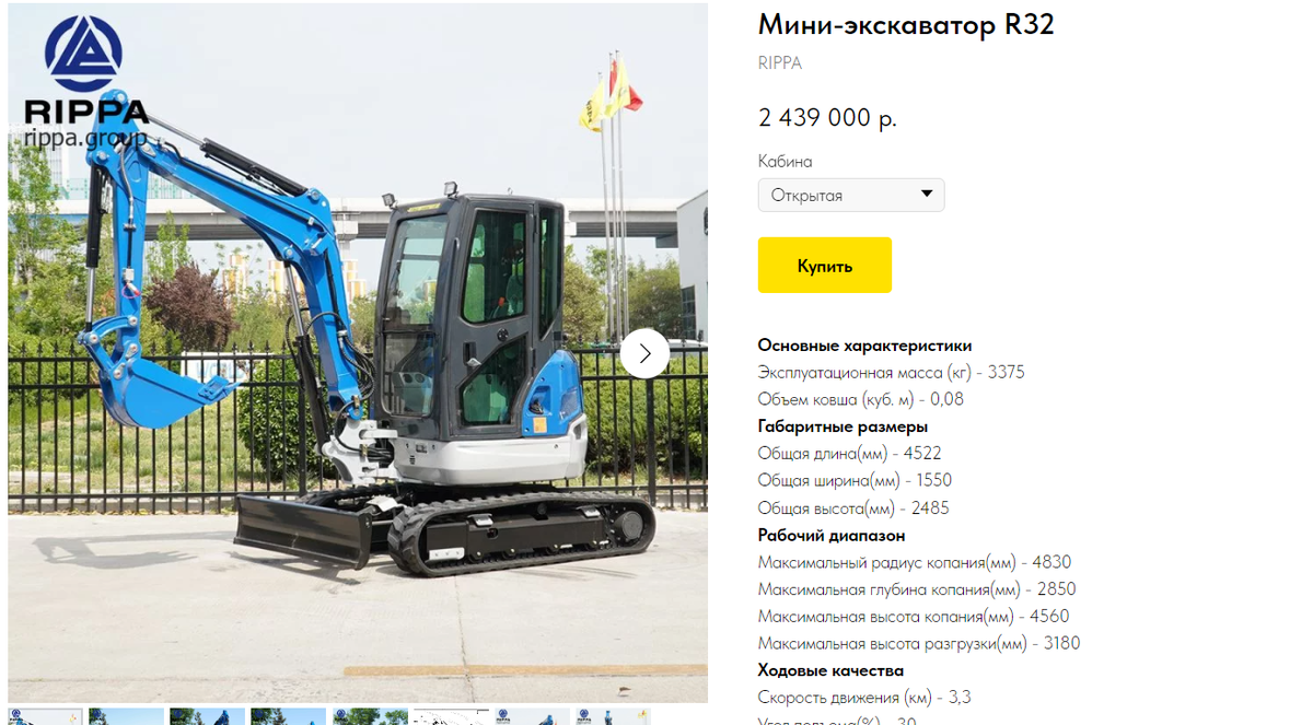 Мини-экскаватор Rippa R32: мощность и комфорт в компактных размерах