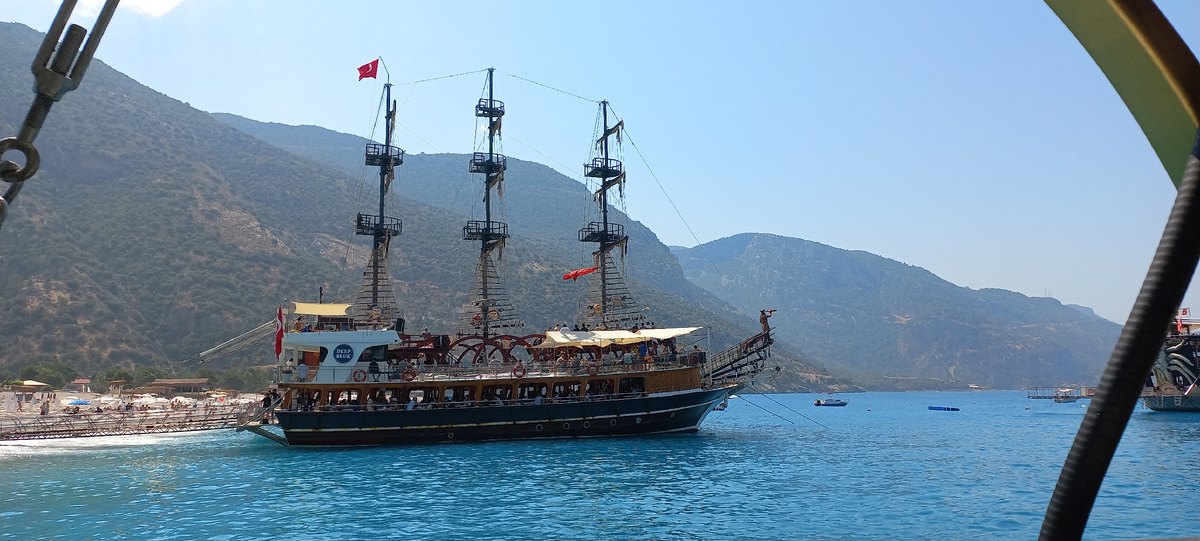Морская прогулка, за деньги да 💲 В один из дней нашего отпуска мы встретились с отельным гидом. Заветная встреча прошла весьма оперативно. Как не странно, представитель туроператора не был настроен на рекламу дополнительных туров. Свое повествование он начал с информации, где искать данные о времени и дате вылета - вообщем и все. Мы поинтересовались, что он может предложить из местных развлечений, лучше бы не спрашивали 🤔. Он не смог предложить ничего, что можно было бы назвать адекватной ценой. А главное, не смог объяснить, почему стоит приобрести тур именно у него. Все упомянутые турагентом компании, которые, по его словам, сотрудничают с ним на эксклюзивной основе, фактически предлагали свои туры на всех центральных улицах Олюдениза. Достаточно пройтись по берегу или центральному променаду и выбрать понравившейся корабль для морской прогулки. Ценник на морскую экскурсию в среднем стоит 25 долларов на человека с едой. Туроператор просил с нас миниму 70 долларов с человека. С парапл