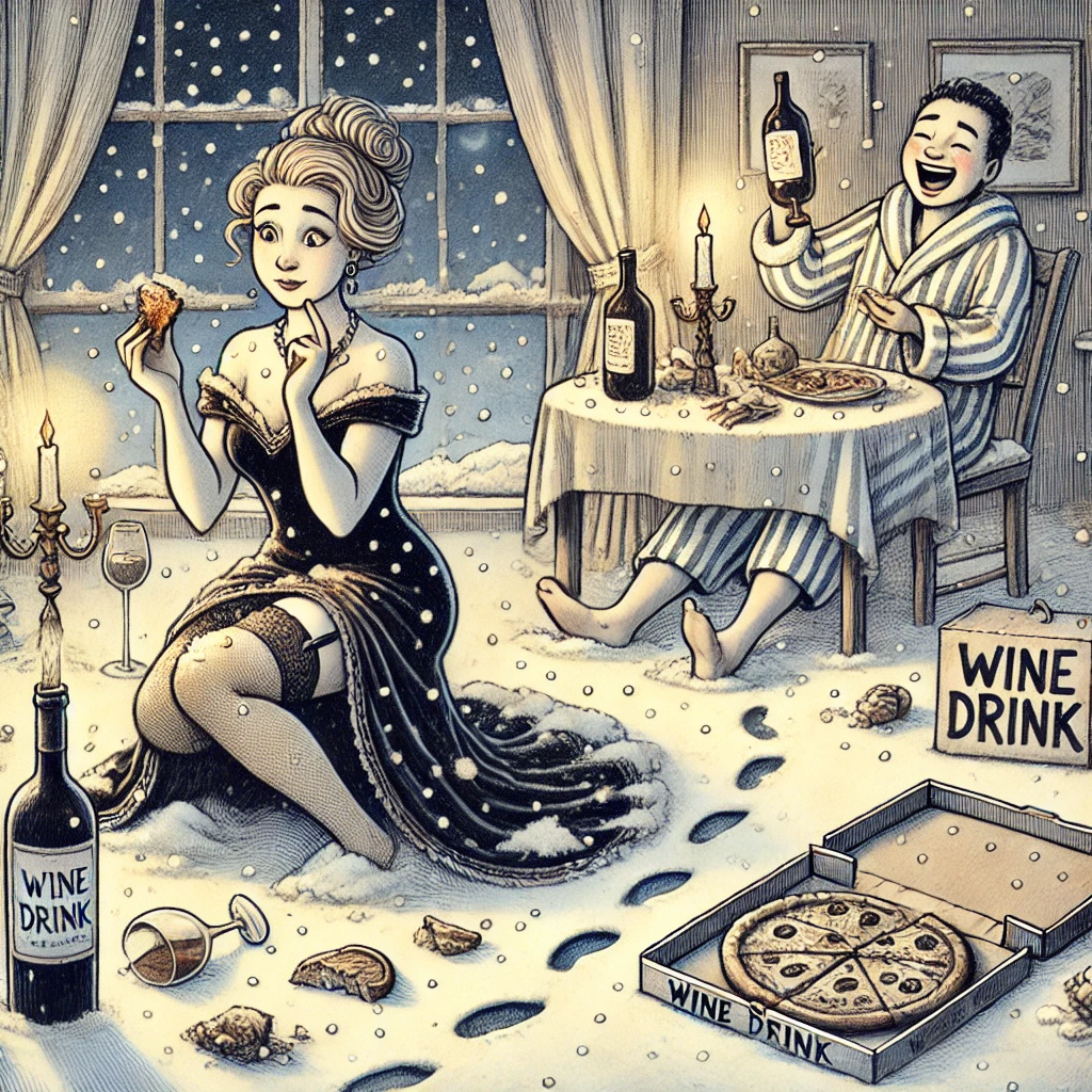 Дальше я решила, что нужно устроить романтический обед. Я купила свечи, скатерть (которая, как выяснилось, была больше похожа на занавеску) и даже вино. Ну, вино — это громко сказано. Это был какой-то странный напиток с надписью "винный напиток", но я решила, что главное — идея.