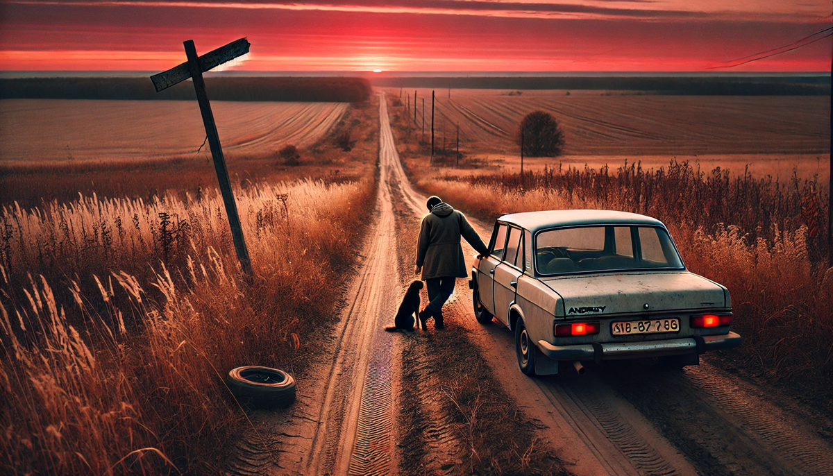 Андрей вёл машину по просёлочной дороге, крепко сжав руль. За окном тянулись золотые поля, одинокие деревца робко кивали ветвями под порывами ветра, а ухабы заставляли машину трястись. Радио что-то пело о дожде, осени и потерянной любви, но Андрей слышал это краем уха. Его мысли были забиты работой. Завтра совещание, неделя обещала быть сложной, а этот случайный путь стал для него небольшим побегом от городской суеты.