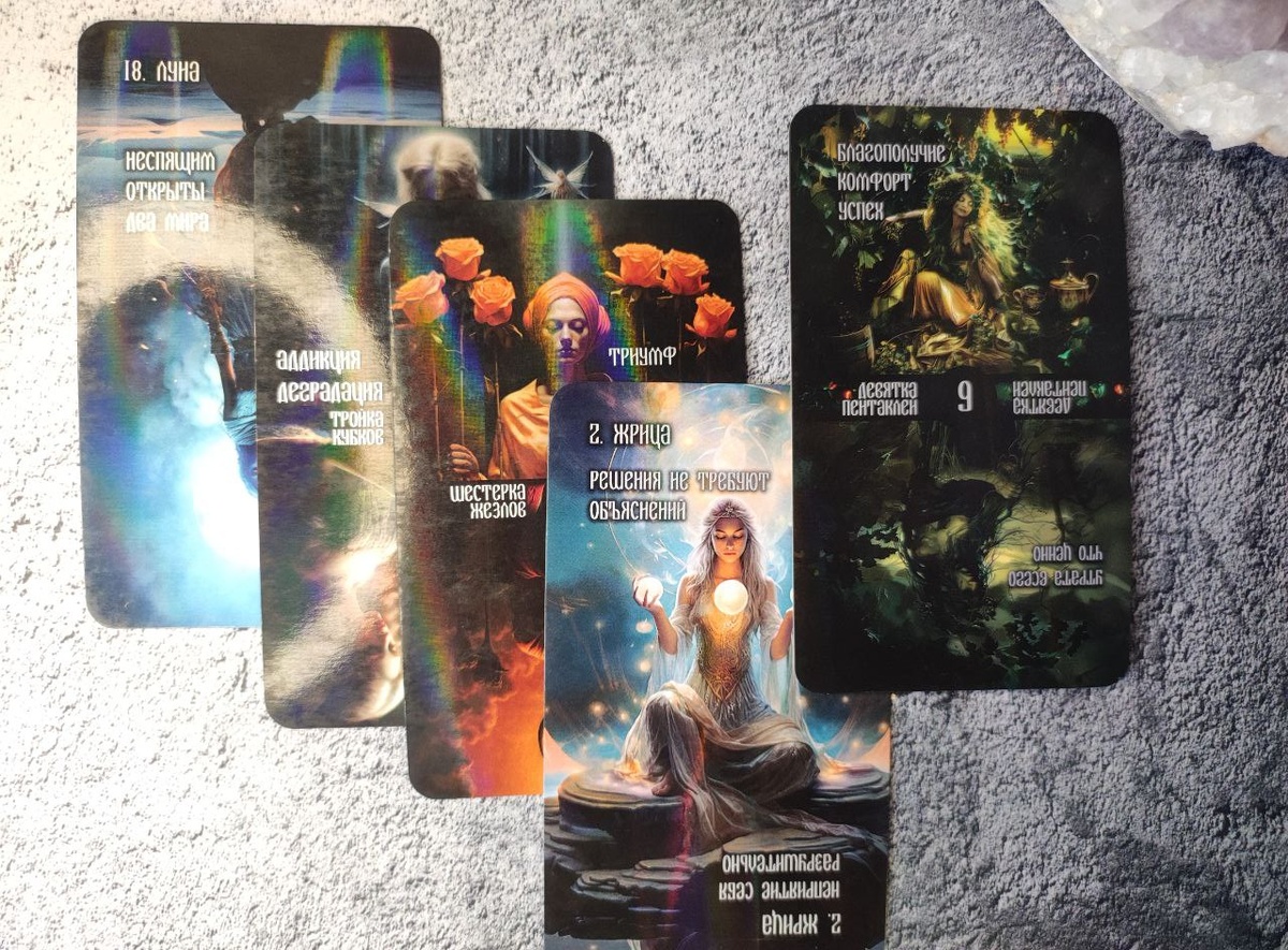 Я предлагаю вам трактовать карты самостоятельно, опираясь на визуальную картинку Духа Карты, и на метафорические подсказки.