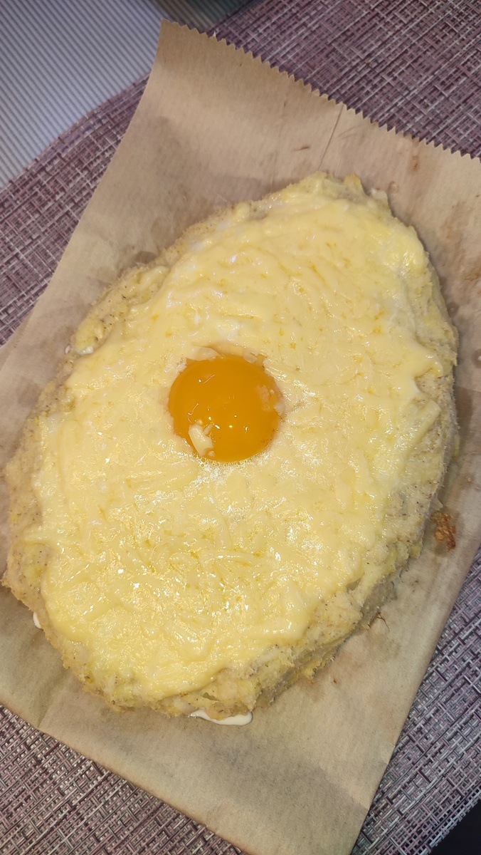 📌Ингредиенты: 280 гр. цветная капуста в готовом виде 50 гр. миндальная мука 2 ч.л. псиллиум 80 гр. твердый сыр 1 яйцо соль 1/2 ч.л. разрыхлитель ✅Приготовление: Отварить цветную капусту в подсоленой воде (10 минут после закипания воды). Помять толкушкой. Добавить остальные ингредиенты кроме яйца и сыра. Соль не добавляла. Замешать тесто вилкой и немножко примять ею. Выложить на пергаментную бумагу, формируя лодочку и выпекать 20 минут при 180С. Затем выкладываем начинку (белок от одного яйца и сыр, примерно 50 гр.). Убрать в духовку на 7 минут при 180С. В конце выложить желток посередине и присыпать остатком сыром. В духовку на 3-5 минут при 180С. Приятного аппетита 😋