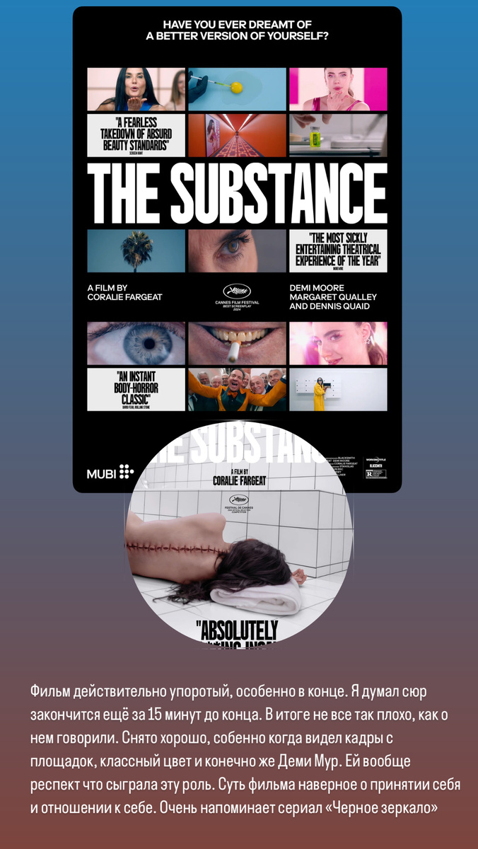 🎬 Здесь я публикую подборки ФИЛЬМОВ и СЕРИАЛОВ которые посмотрел. Как правило, это скриншоты афиши с рецензией, без воды и т.д. Подписывайтесь и Добавляйте в закладки, делитесь с друзьями и ставьте в комментах ++ если смотрели, так же пишите что понравилось или нет. Ваше мнение может не совпадать с моим, некоторые картины пересматривал повторно, а какие-то лучше бы не смотрел по этому они в этом списке. Большинство обложек на языке оригинала тк перевод на всех языках разный. ✅ Подписывайтесь, что бы видеть больше интересных публикаций. Больше подписчиков, чаще буду выкладывать. Пишите в комментариях, всем отвечу! Если вам интересно посмотреть полные 🎬 мои съемки контента dzen.ru/GorlovMedia 📚 Сайт gorlov.media 📲 Смешные видео dzen.ru/GorlovDays 🧭 Путешествия dzen.ru/GorlovTravel 🔐⛔️ Инста @GorlovTimofey и @GorlovMedia 🚀 Канал YouTube.com/GorlovTimofey
