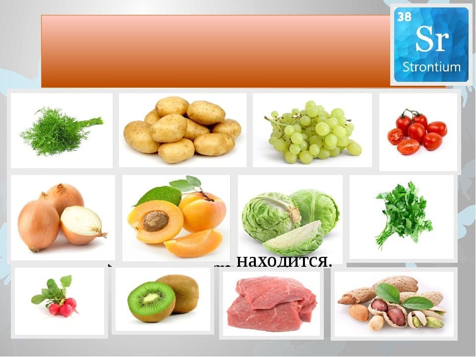 Стронций – элемент, обмен которого связан с обменом кальция. В организме в малых дозах он предотвращает развитие кариеса и остеопороза. При избыточном поступлении ионы стронция могут замещать кальций в костях. У животных, обитающих на почвах со значительным количеством целестина, наблюдается повышенное содержание стронция в организме, что приводит к ломкости костей, рахиту и др. заболеваниям. костеобразования. Содержится данный элемент: бобовых культурах (горох, бобы, фасоль); зерновых (пшеница, пшено, греча, овес); твердых сортах (рожь и дикий рис); растениях, образующих клубни, и корнеплодах (картошка, репа, свекла, морковь); фруктах (айва, абрикос, виноград, ананас, киви, груша); морской капусте; орехах (арахис, фундук, фисташки, кешью); мясных продуктах. Относительно воды , то на территории России разрешенное количество описываемого элемента уже превысило в 2 раза допустимую норму. Кобальт. Принимает участие в процессах кроветворения. Его физиологическая функция непосредственно св