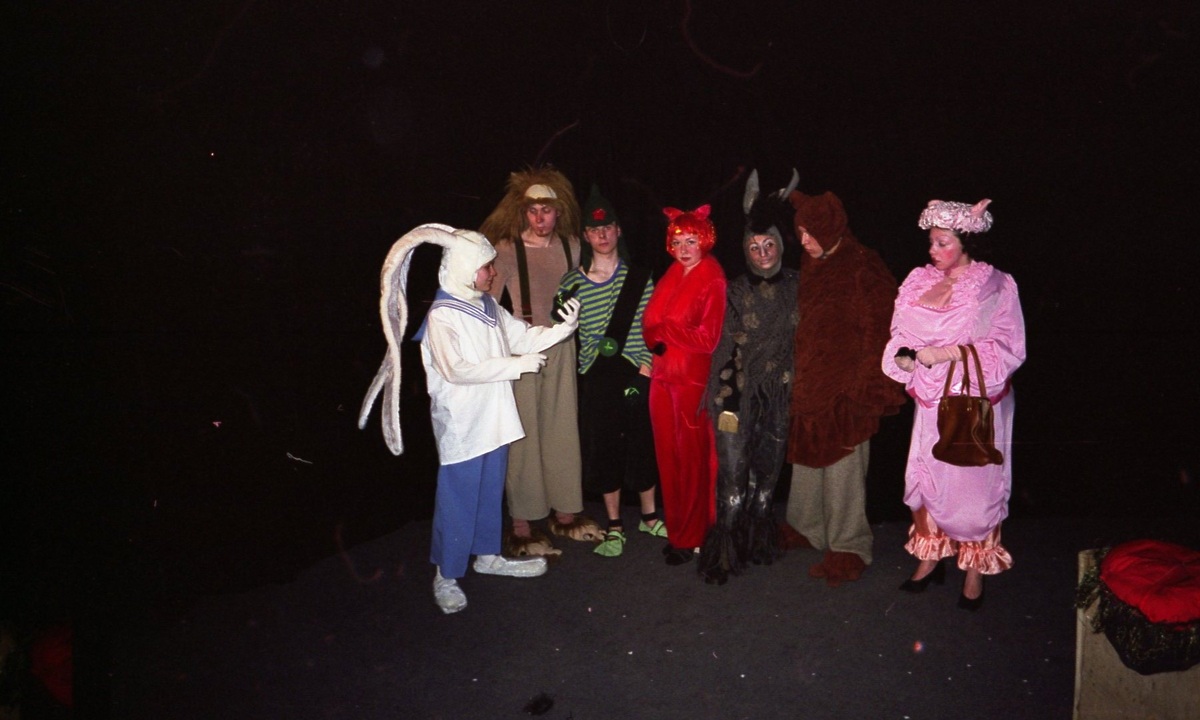 Кого-то больше нет с нами, кто-то стал знаменитым, а кто-то откровенным мудаком. Кто-то пьет. А кто не пьет?! А фото костюмов и воспоминания остались. Перебирая архив, наткнулась на эти фото. Спектакль "Великий Лягушонок". Шел когда-то в театре "Мимигранты". Сложнее всего было жить Кролику, Свинье и Медведю. У Кролика была шапка из люстры! Пришлось взять за основу жесткую основу кухонной люстры. была задача - закрепить конструкцию из проволоки - длинные уши, которые бы стояли дугой. (не поверите, какое слово хотела написать). Тяжесть жесткой проволоки, меха, самой шапки заставляла ненавидеть всех и вся. После спектакля на шее были отчетливо видны рубцы. Пластиковый каркас из дешевой люстры как мог, помогал удерживать конструкцию. Но красиво - эффектно, что да, то да. Почему я это терпела? Муки на спектакле, козел режиссер. Один у меня вариант - должен был появиться мой сын. А так - нахуй мудака! Девочки! Если будете шить похожие костюмы - главное, избавьтесь от мудаков вовремя! Но эт