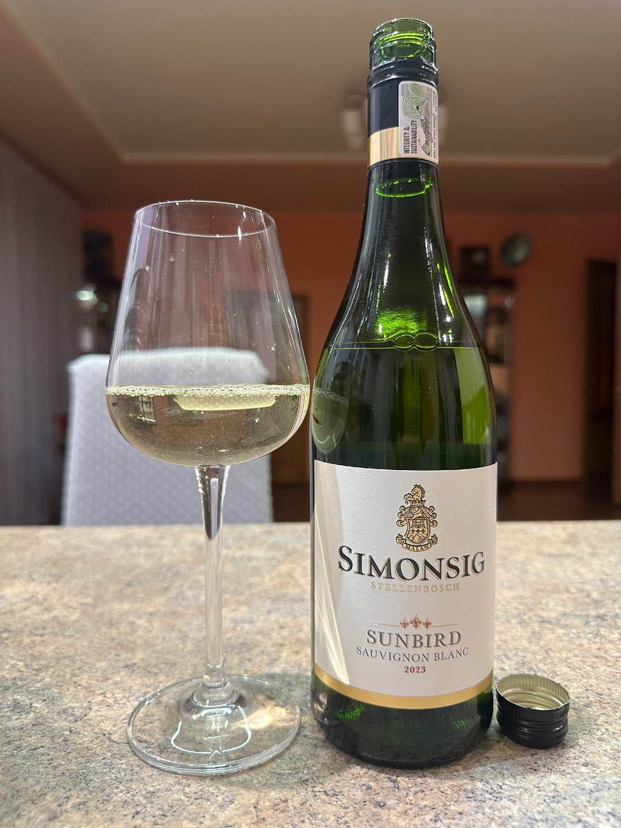 Вино, которым я пока хочу завершить цикл обзоров по Совиньон блан это базовое вино из ЮАР от винодельни Simonsig. Это не первое моё знакомство с этим хозяйством. Первое вино из Шенен блан меня пленило, и я полюбил этот бренд с первого глотка. Родились мы с этой винодельней в один год и регион топовый для ЮАР. Стеленбош для ЮАР это,пожалуй, как долина Напа или Орегон для США. Скажу честно, что я не читал аннотацию к вину до дегустации и тем приятнее было, что я угадал технологические нюансы. Вино, как и все предыдущие Совиньон бланы просто кристальной чистоты и свежести в бокале. Цвет чуть соломенный с оттенками зелени. Первый нос сразу сказал о микробиологической чистоте. Я очень привередлив в этом плане и модные тренды диких вин меня коробят. Я не могу сказать, что аромат сильный и выдающийся. Вполне спокойный, близкий к Совиньону из Луары по интенсивности запах. Тем не менее он чуть сложнее. Первая мысль была о болгарском перце, но это ушло буквально в первые минуты, оставив манго,
