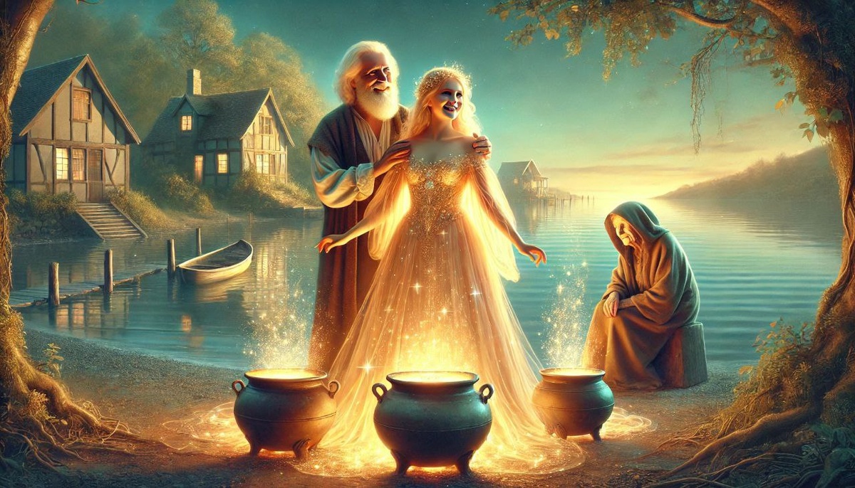В одном маленьком приморском селе старик со старухой. Старик был добрым и трудолюбивым, а старуха — вечно недовольной и жадной. Каждый день старик ходил к морю, чтобы ловить рыбу, а старуха сидела дома и ворчала, что им не хватает богатства и роскоши. Однажды старик поймал необычную золотую рыбку. Рыбка заговорила человеческим голосом и пообещала исполнить любые желания, если он отпустит её на свободу. Старик, будучи человеком простым, не стал ничего просить для себя и отпустил рыбку. Но когда он рассказал об этом старухе, та пришла в ярость и заставила его вернуться к морю, чтобы просить у рыбки новое корыто. Старик послушался. С этого момента началась череда бесконечных желаний. Старуха требовала всё больше и больше: новый дом, богатство, власть, даже титул царицы. Старик, уставший от её ненасытности, каждый раз шёл к морю и просил рыбку исполнить очередное желание. Но чем больше старуха получала, тем злее и требовательнее она становилась. Наконец, старик не выдержал. В очередной ра