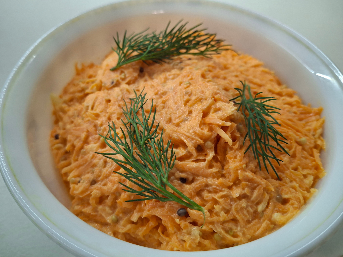 Морковь с Зерновой горчицей. Салат от Галины. Обычный салат с необычным ингредиентом, меня научила делать Галочка.