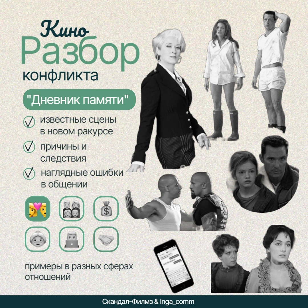 Разбор Классического конфликта (сlassic-ko) История Ноя и Элли - это не только про вечную любовь, но и про острые, как перчик чили, конфликты, которые ярко показывают свое влияние на судьбы людей. Первая любовь, долгие годы разлуки, и вот они снова вместе. Но есть загвоздка — жених Элли. Посмотрим, как они попали в воронку конфликта? 1. Зарождение: Элли в смятении, ей нужно выбрать между надежным женихом и любимым Ноем. Ной видит неуверенность Элли и боится, что его снова бросят. Ситуация так себе: она хочет поддержку, он молчит, а напряжение растёт. 2. Напряжение: Оба злятся от своих противоречий и страхов. Элли ждёт от Ноя уверенности в их будущем, а Ной гоняет мысли вроде: «Она уйдёт, точно уйдёт!» Он уже знает, как ему будет плохо без нее. Всё, что можно услышать в этот момент — это тиканье эмоциональной бомбы. 3. Запуск: Ной не выдерживает и вываливает свои опасения на Элли, которые бьют каждым новым упреком все больнее. Элли терпит, не желая вовлекаться в ссору, но взрывается на