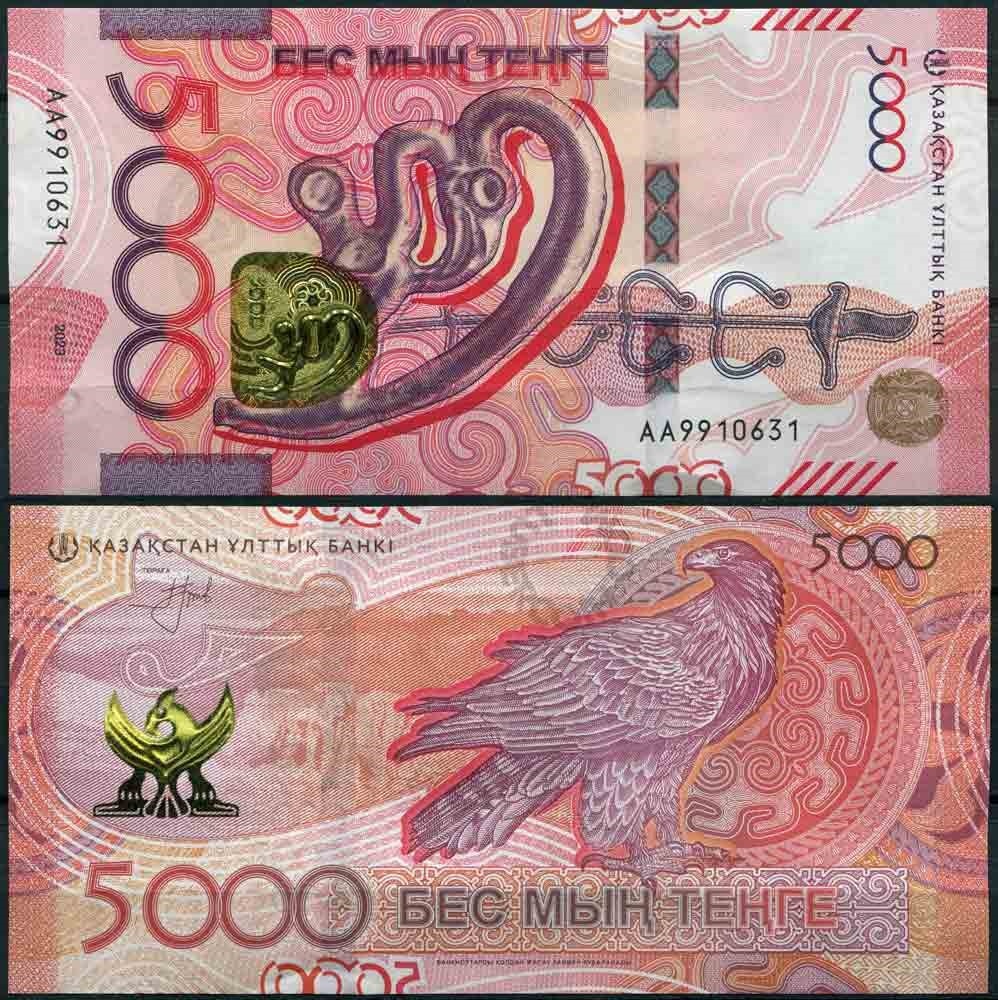 Первая банкнота была выпущена 25 декабря 2023 года номиналом 5 тысяч тенге. В середине 2024 года появилась купюра номиналом 10 тысяч тенге. Выпуск остальных банкнот из этой серии планируется поэтапно в течение нескольких лет: - банкноты в 2000 и 1000 тенге — летом и осенью 2024 года соответственно; - банкноты в 20 000 и 500 тенге — в 2025 году Банкноты посвящены сакской культуре и передают самобытность воззрения предков, их связь с природой и животным миром. На купюрах номиналом от 500 до 20 тысяч тенге изображены представители фауны Казахстана — лошадь, архар, беркут, сайгак, тазы. Центральными изображениями лицевой стороны являются: –ветвь «Древо жизни» с парящей птицей –спираль ДНК и стилизованный под орнамент символ бесконечности, обозначающие связь человека с природой; –артефакт — украшение в виде фигуры беркута Главными изображениями оборотной стороны являются: На оборотной стороне на фоне стилизованного орнаментом щита изображён Беркут. За основным изображением расположен