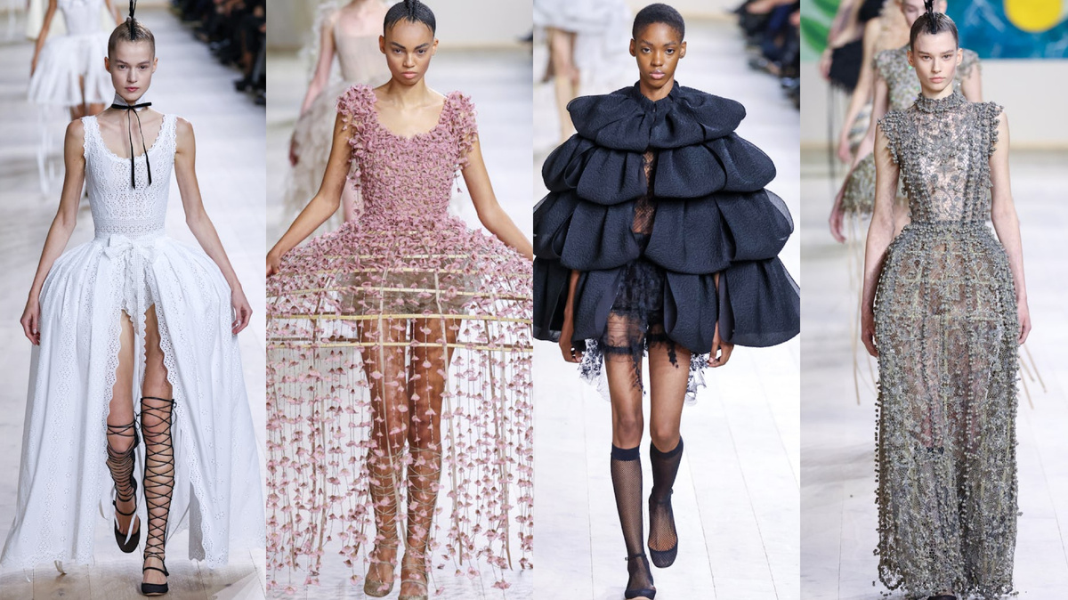 Показ Dior Сouture весна 2025 года Марии Грации Кьюри, наполненный панковскими головными уборами из перьев и юбками в бамбуковую клетку со шлейфом цветов и бабочек из органзы, кружева и рафии, стал чистой дозой модной фантазии. Под звуки песни Фреда и Энджи Макмахон "Light Dark Light" (песня о том, как научиться танцевать заново) коллекция передала чувство беспокойства и стойкости, отражающее настроение момента. В описании коллекции говорилось о создании пространства "полной свободы, как будто зеркала, заполняющие кутюрную студию, могут, подобно зазеркалью Алисы, открыть доступ к другой реальности". Если общий эффект был очень похож на Страну чудес, то все приземленные сигнатуры, которые Кьюри разработала в Dior за восемь с лишним лет, прошедших с тех пор, как она впервые отправила на подиум футболки с надписью "We Should All Be Feminists", присутствовали и учитывались, начиная с феминистских посланий и заканчивая прозрачными платьями. Это было возвеличивание мелкого персонала кут